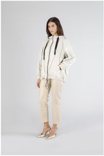 Joli plumeau pliable en nylon ultraléger de couleur contrastée qui devient un sac à dos confortable si nécessaire. manches longues.