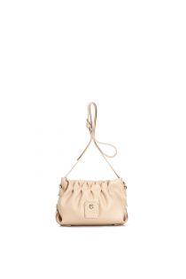 Pochette bandoulière amovible avec plis souples. détails à points smocks avec étiquette appliquée. fermeture à glissière.