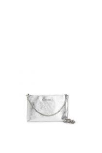 pochette en cuir lamé avec bandoulière double chaîne silver