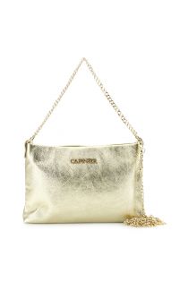 pochette en cuir métallisé, bandoulière et poignée avec chaîne et mousquetons gold