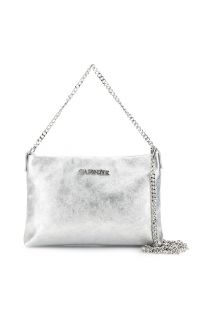 pochette en cuir métallisé, bandoulière et poignée avec chaîne et mousquetons silver