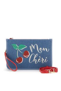 Pochette en toile pour femme avec détails effet nappa. son design structuré est rehaussé par un imprimé graphique et une inscription sur le devant pour une touche à la fois ludique et originale. elle est dotée d'une fermeture éclair contrastante d'une poignée et d'une bandoulière amovible pour un style polyvalent du matin au soir. dimensions : 28.5 cm (longueur) × 18 cm (hauteur) × 6 cm (profondeur)