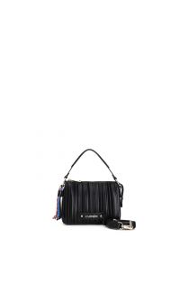 Pochette en matière souple plissée avec poignées tressées patch porte-plaquette personnalisée sur le cadran avant et pendentif en corde avec fils colorés avec bandoulière en option.