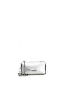 Pochette pour téléphone portable avec fermeture éclair effet métallisé à porter en bandoulière avec chaînette