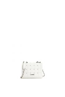 porte-documents à longue patte avec matelassage à carreaux et cabochons pyramidaux white