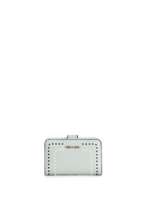 portefeuille avec application de mini rivets bicolores, logo en métal sage
