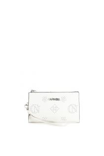 Portefeuille avec pliage et double ouverture avec fermeture éclair et gousse motif logo micro-perforé avec lacet pour porter au poignet.