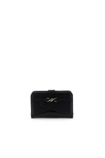 Portefeuille aspect cuir avec motif patchwork et logo en métal. Poche zippée pour la monnaie.