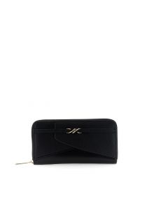 Portefeuille zippé effet cuir avec motif patchwork et logo en métal.