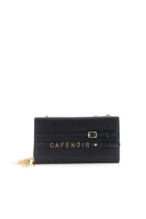 portefeuille effet cuir avec rabat avec inscription et boucle black
