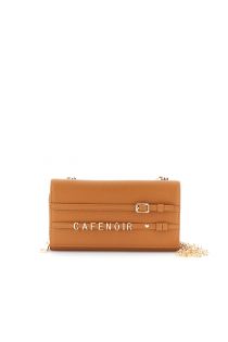 portefeuille effet cuir avec rabat avec inscription et boucle tan