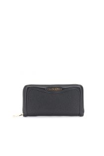 Portefeuille aspect cuir avec fermeture éclair, cadre rembourré et inscription en métal