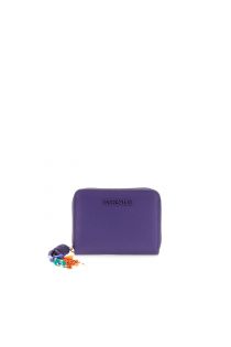 Portefeuille zippé effet Saffiano avec logo assorti et breloques multicolores.