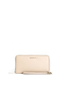 portefeuille femme en cuir avec zip et poignée amovible powder