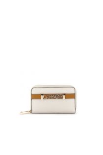 portefeuille moyen à double fermeture éclair et effet cuir grainé cream/leather