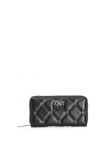 Grand portefeuille pour femme avec fermeture éclair ronde applications de rivets colorés et logo bicolore