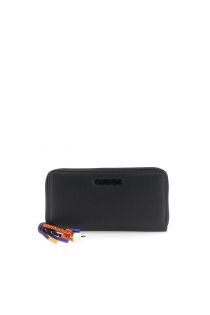 Portefeuille zippé effet Saffiano avec logo assorti et breloques multicolores.