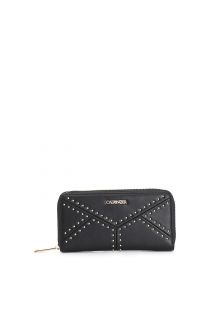portefeuille zippé rond avec finition patchwork et applications de micro-rivets black