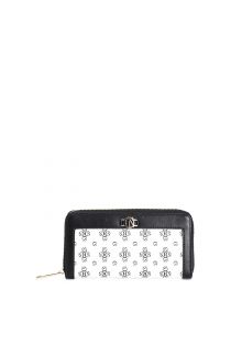 portefeuille zippé rond en saffiano imprimé monogramme, accessoire metalvetti black