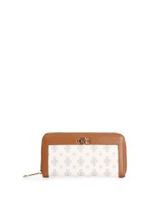 portefeuille zippé rond en saffiano imprimé monogramme, accessoire metalvetti tan