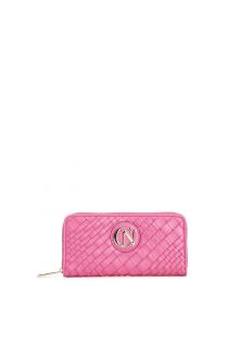 portefeuilles avec fermeture éclair au tressage irrégulier hot pink