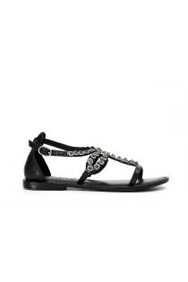 Prix spécial : Sandales plates en cuir avec fleur en strass