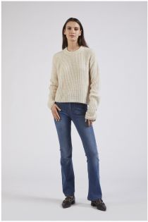 Chemise à manches longues et col ras du cou en fil de laine viscose.