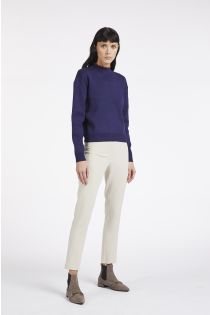 Pull à col roulé réalisé en un fil de viscose mélangée. Point de tricot délicat avec finition de couleur contrastante
