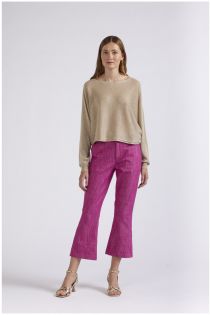 Pull à encolure bateau et manches longues chauve-souris en fil de viscose mélangé de lurex