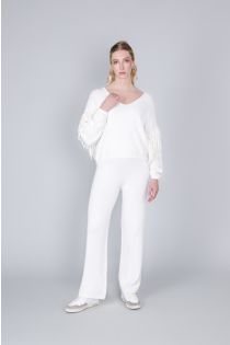 Pull à col V et franges sur le devant, confectionné dans un mélange de viscose chaud. Idéal pour un look décontracté et confortable. Coupe classique. Le mannequin mesure 174 cm et porte une taille S.