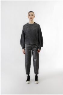 Pull à col motard en laine et lurex mélangés. vêtement qui protège du froid avec style et charme pendant la saison la plus froide.