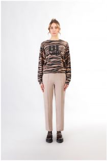 Pull à col rond imprimé en fil de laine mélangée chaud et doux. notre slogan « be noir » est enrichi de strass. disponible en deux variantes de couleurs. vêtement d'un grand confort et polyvalence. modèle passe-partout pour tout type de besoin.