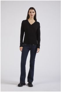 Pull-over à col en v et manches longues en fil de laine viscose.