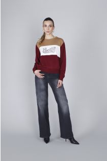 Pull col rond color-block en laine mélangée chaude, orné de strass et du mot « sportif ». Une pièce décontractée et lumineuse, idéale pour un look confortable et audacieux. Le mannequin mesure 173 cm et porte une taille S.