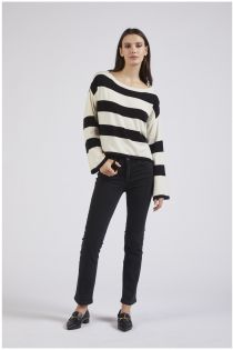 Pull rayé à col ras du cou et manches longues. coupe confortable en fil de viscose.