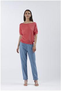 Pull à encolure bateau et manches courtes en fil mélangé de viscose. parfait pour qui aime un style essentiel et des lignes épurées.