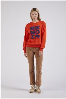 Pull à col ras du cou réalisé dans un fil mélangé d'angora chaud et doux. la chemise reproduit notre slogan "be noir" dans une couleur contrastée. une délicate ligne de strass encadre l'inscription.