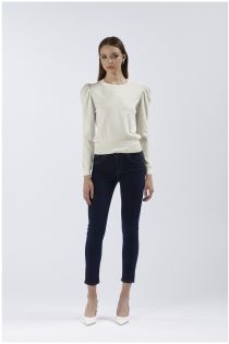 Pull basique ras du cou et à manches longues avec fronces sur les épaules. réalisé en fil de viscose mélangé.
