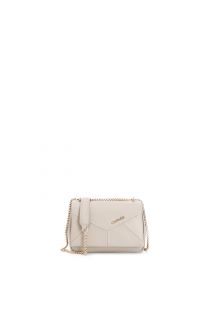 Rabat avec finition patchwork et applications de micro rivets. sac divisé en différents compartiments : une cloison fermée par zip et poche. bandoulière avec chaîne.