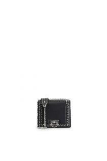 Rabat avec applications de rivets et fermeture en métal bandoulière avec chaîne. sac avec un seul compartiment et une poche intérieure zippée.