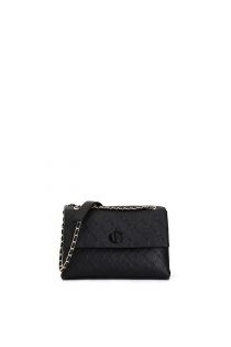 Sac bandoulière avec rabat. logo gaufré sur toute la surface et accessoire ton sur ton. bandoulière à chaînette. tirette tressée avec breloque.
