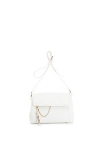 Sac bandoulière à rabat en saffiano lisse. tirette avec lettres en métal et chaîne amovible. fermeture par aimant. sac à deux compartiments.