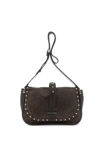 Sac à rabat en similicuir à l'effet vieilli et délavé, orné de clous et d'une sangle centrale. Inscription métallique, poche arrière et bandoulière ajustable pour une touche d'audace.