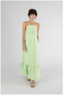 Robe modèle robe d'été longue avec décolleté profond dans le dos et volant dans le bas. robe confectionnée dans une élégante mousseline de soie mélangée. cette robe à la ligne simple et épurée est un mélange parfait de romantisme et de raffinement qui vous assurera un look classe et bon ton.