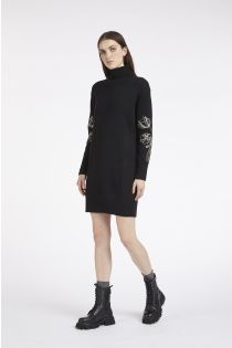 robe à col roulé avec broderie florale sur les manches