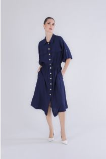 robe à taille élastiquée et boutonnage sur le devant navy
