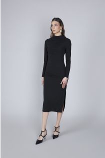 Robe en jersey longueur genou, manches longues et décolleté volcan orné de volants raffinés. Idéale pour des looks élégants et polyvalents. Le mannequin mesure 173 cm et porte une taille S. Coupe classique.