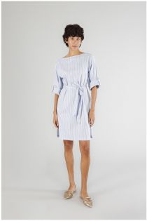 robe avec encolure bateau et ceinture light blue striped