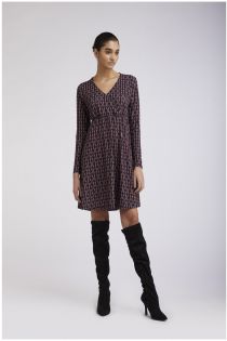Robe à encolure croisée et manches longues en jersey imprimé effet crêpe.