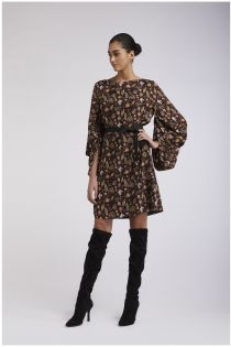 Robe à encolure bateau et manches ballon distinctives. réalisé en triple georgette avec un imprimé floral.
